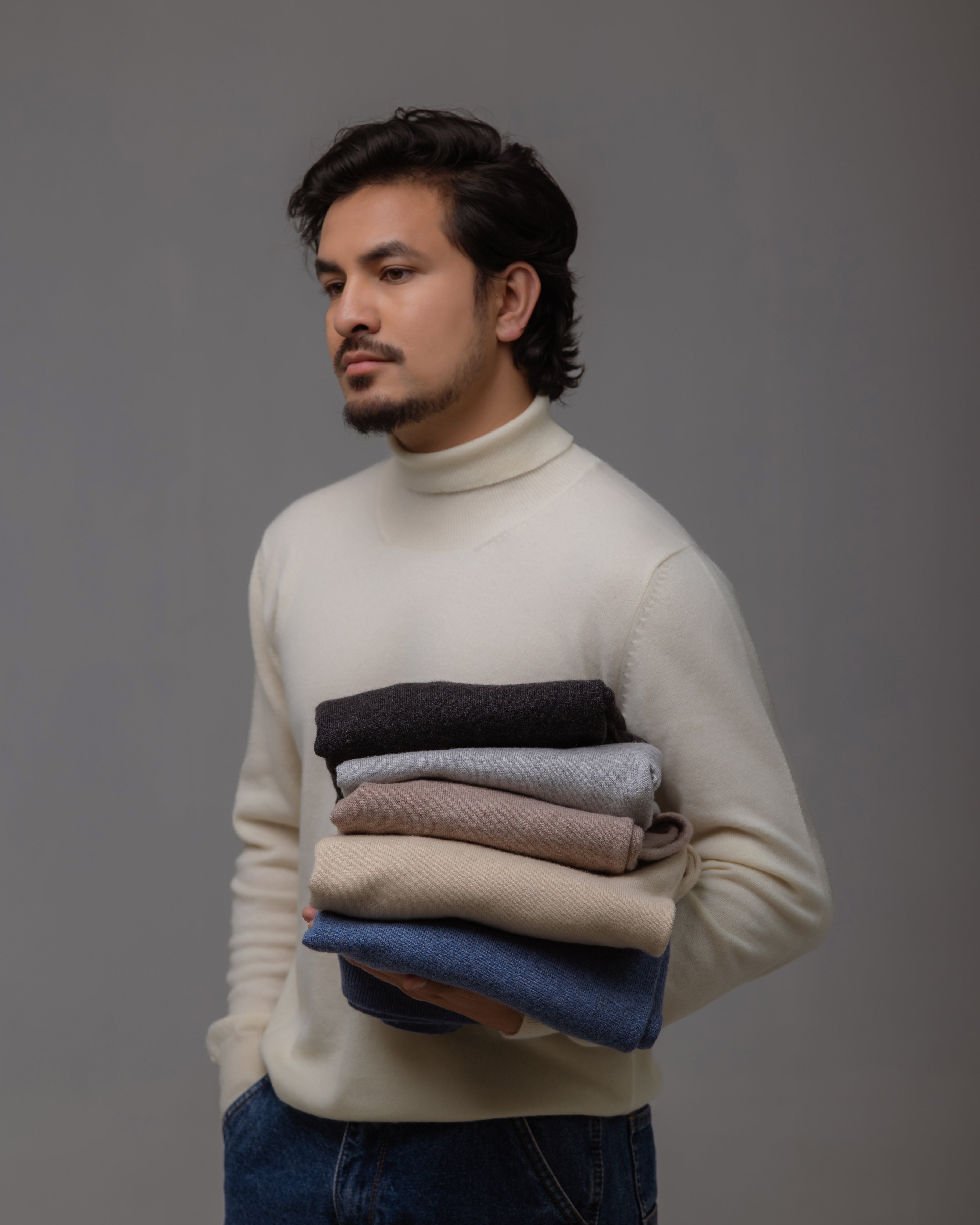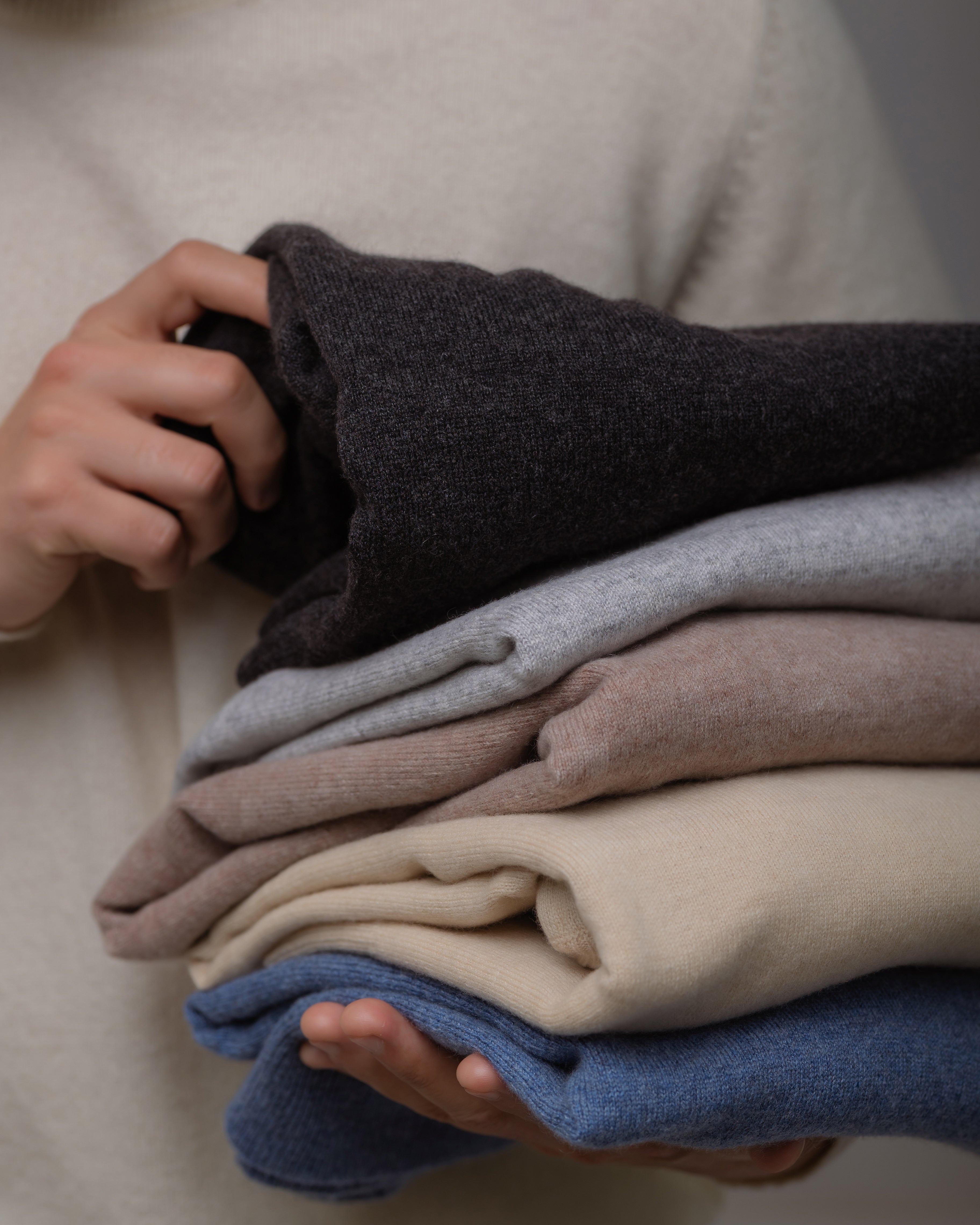 このコレクションでは、100%カシミヤの美しさを最大限に活かしたベーシックな形(クルーネック、Vネック、スカーフ、ビーニー)を中心に構成。