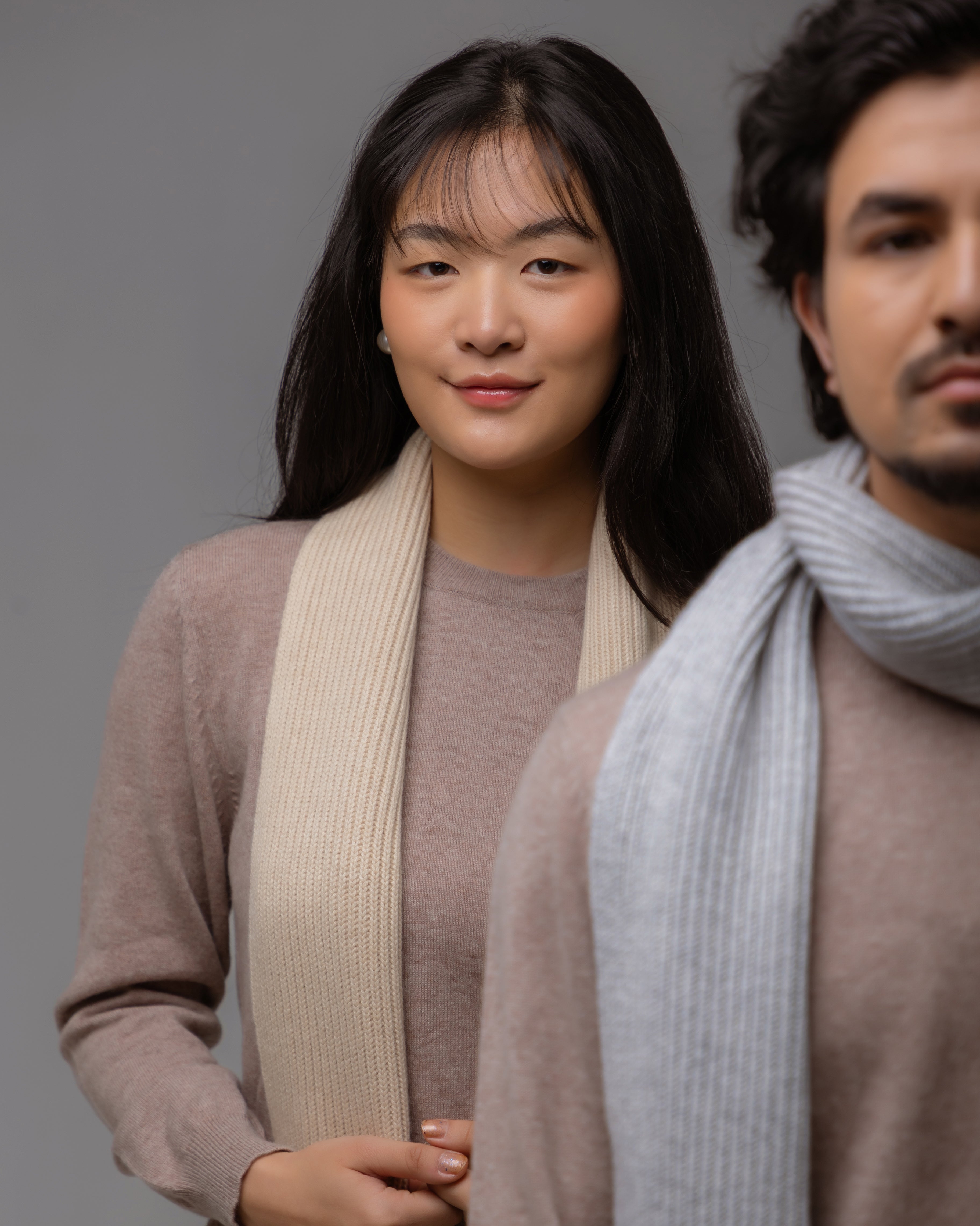 このコレクションでは、100%カシミヤの美しさを最大限に活かしたベーシックな形(クルーネック、Vネック、スカーフ、ビーニー)を中心に構成。