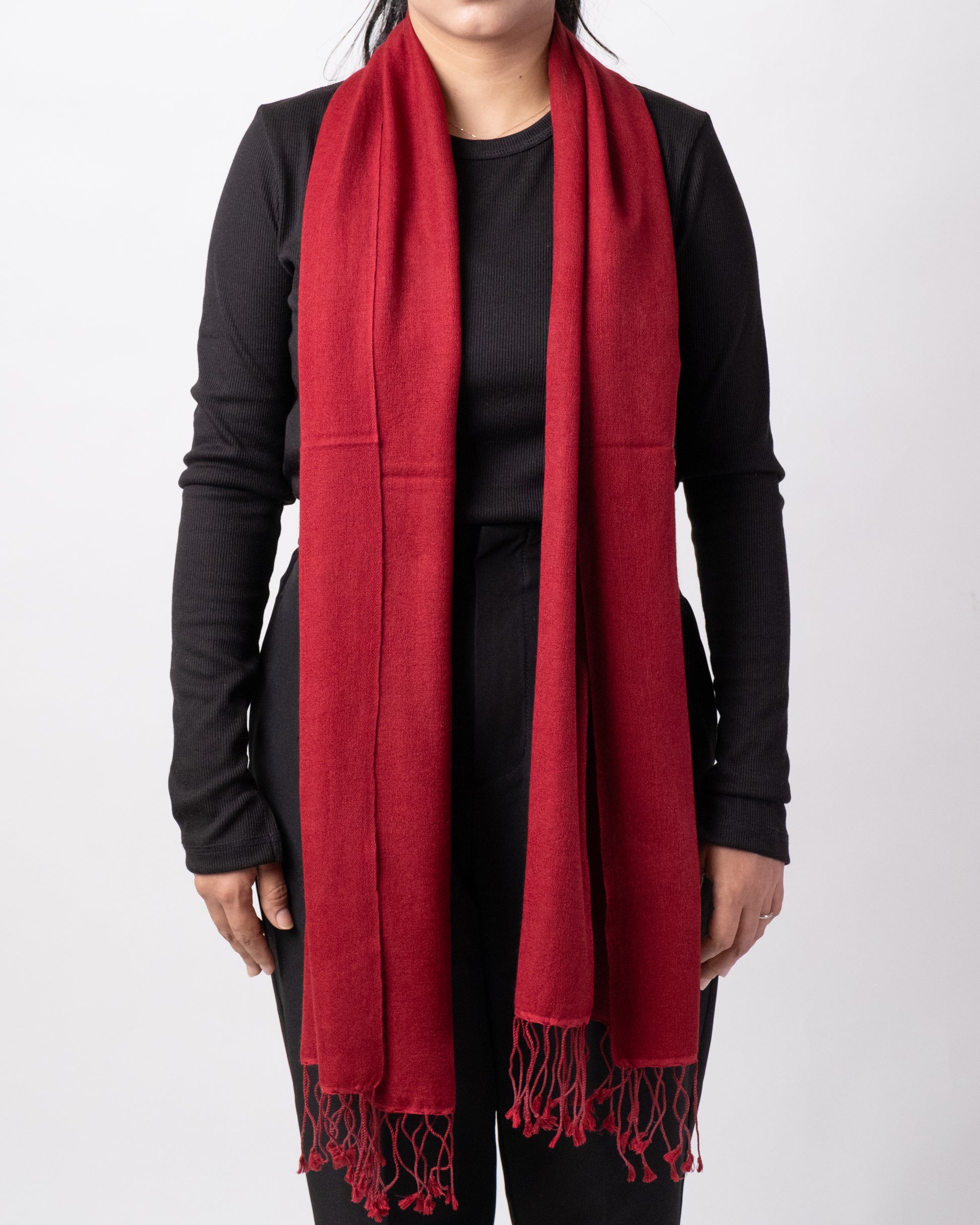 パシュミナ・シルク ストール(ワインレッド)