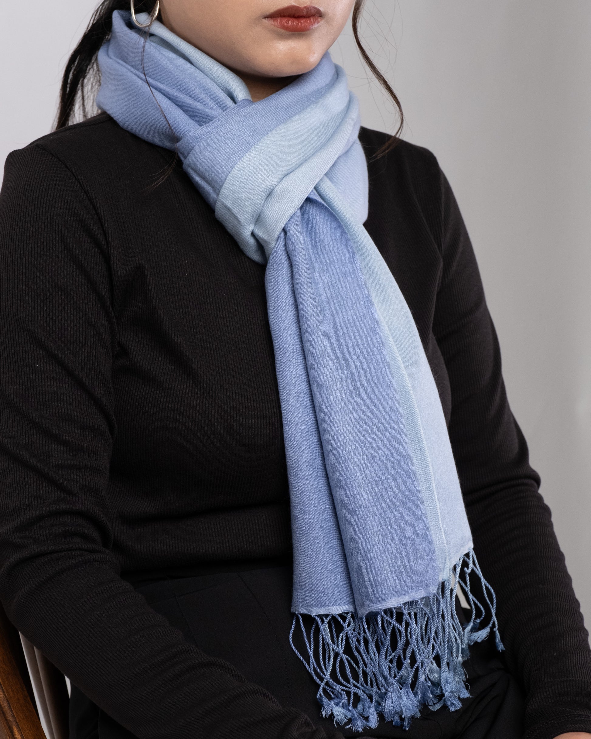パシュミナ・シルク ストール(ブル/ライトブルー)