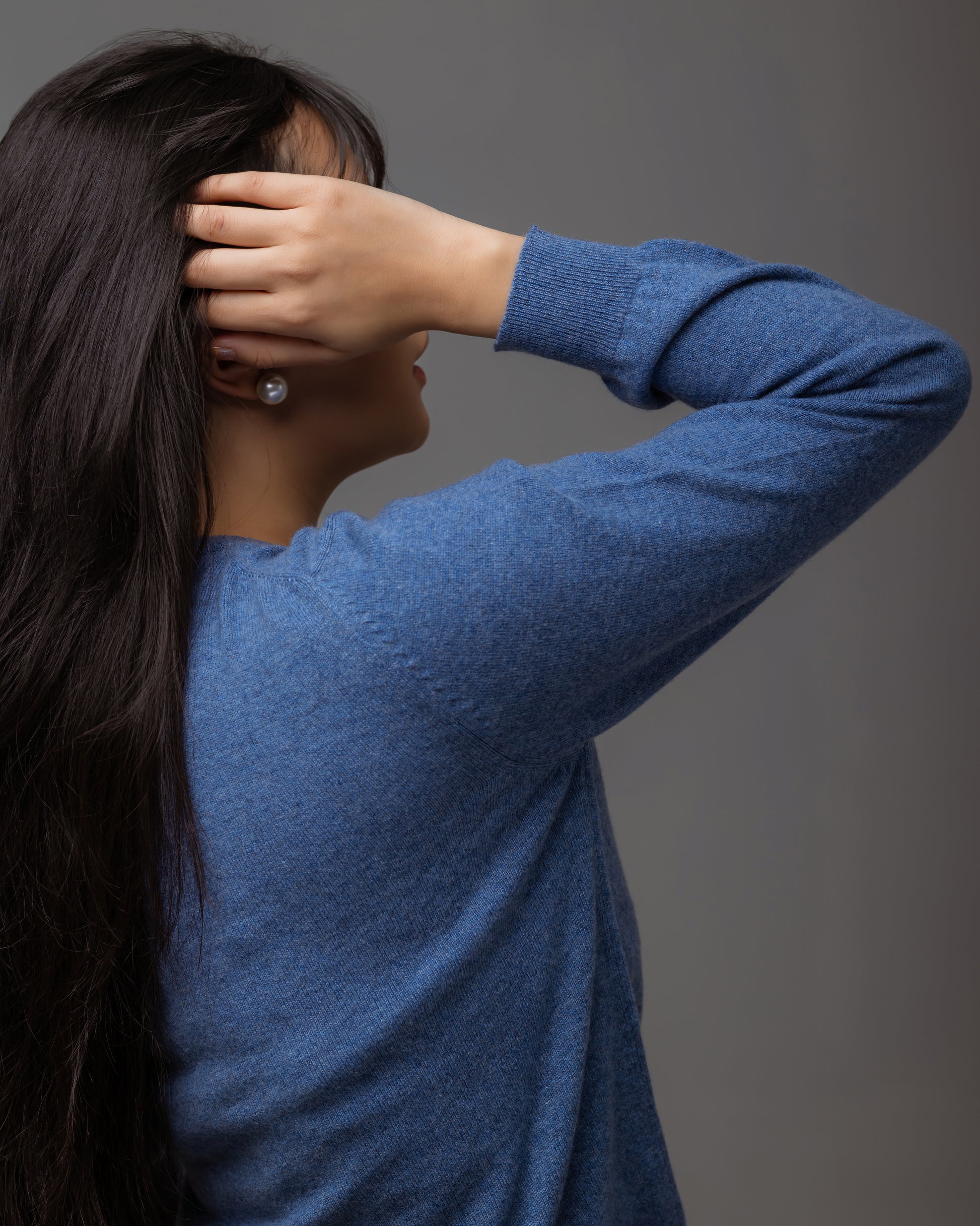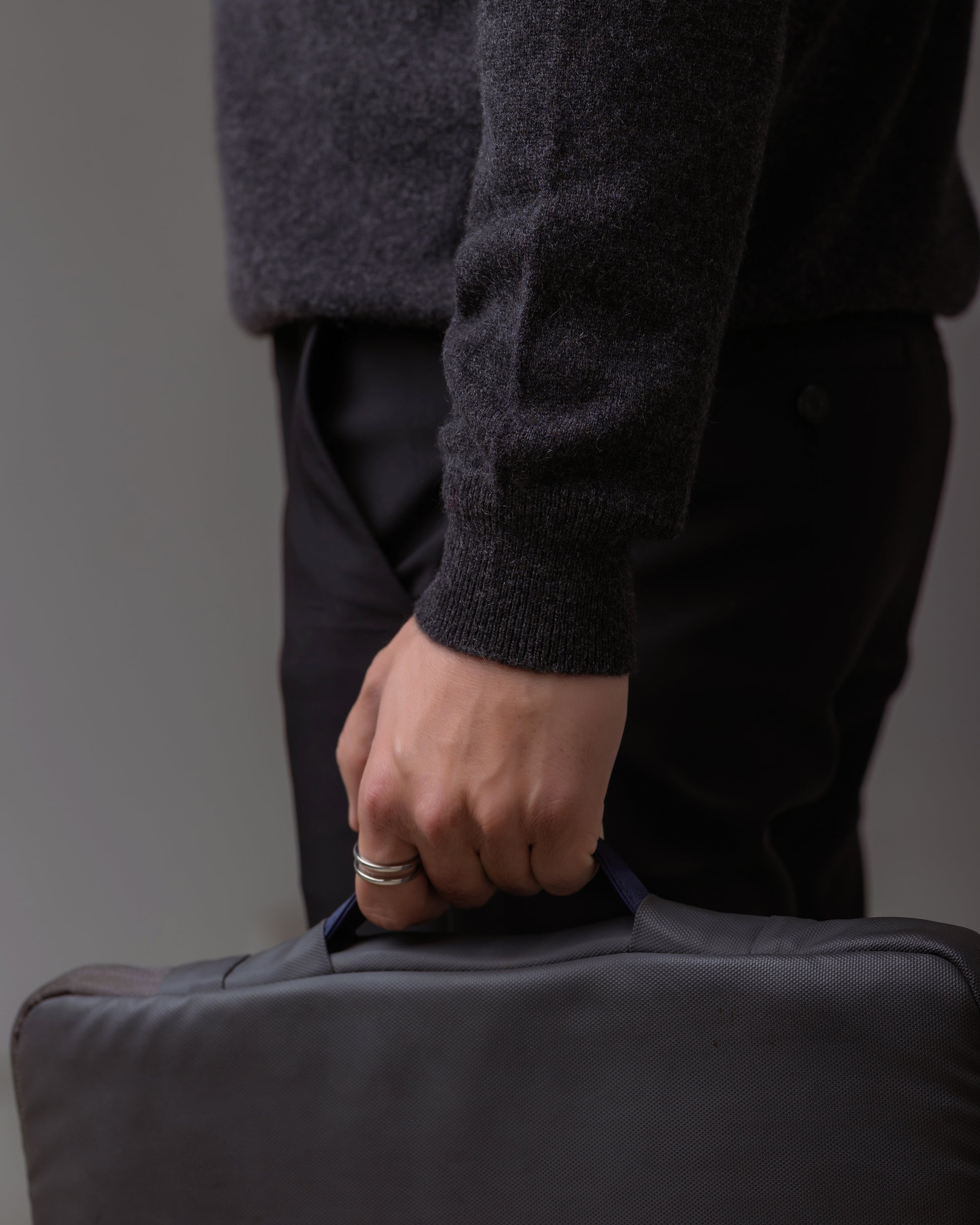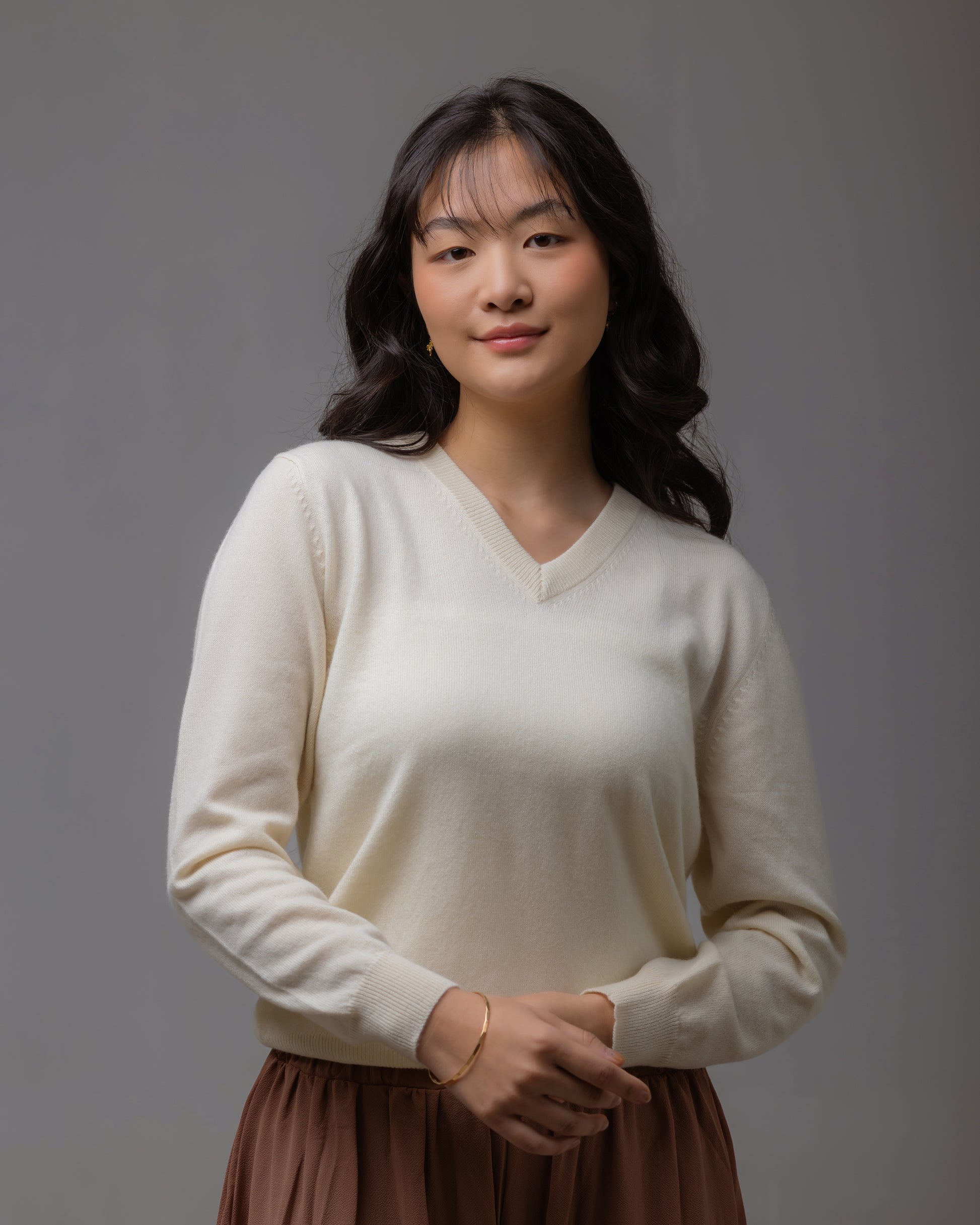 100%カシミヤのVネックセーターは、軽やかで通気性に優れながら、しっかりとした保温性があり、一枚でもレイヤードでも活躍。すっきりと開いたネックラインが、ミニマルな着こなしに上品さと柔らかさを添えてくれます。