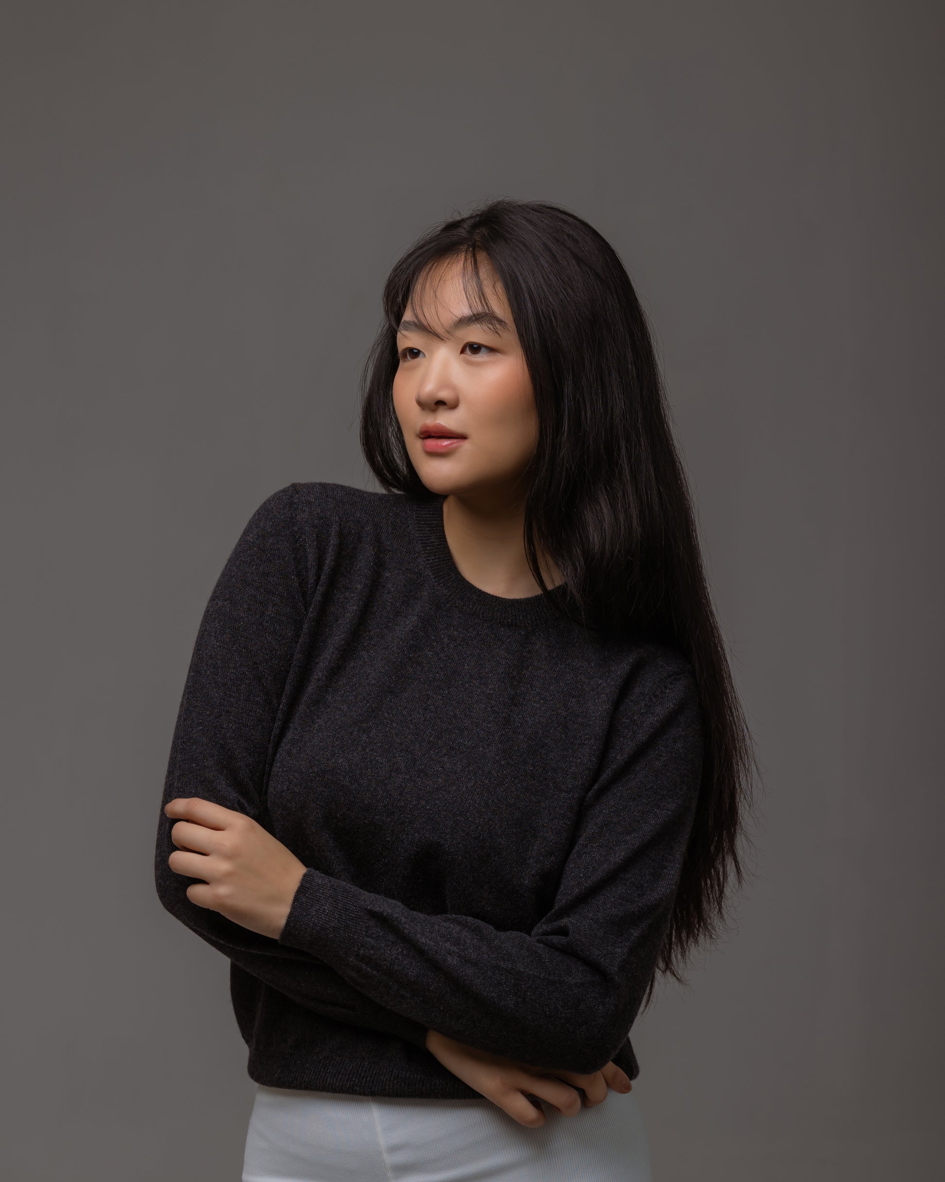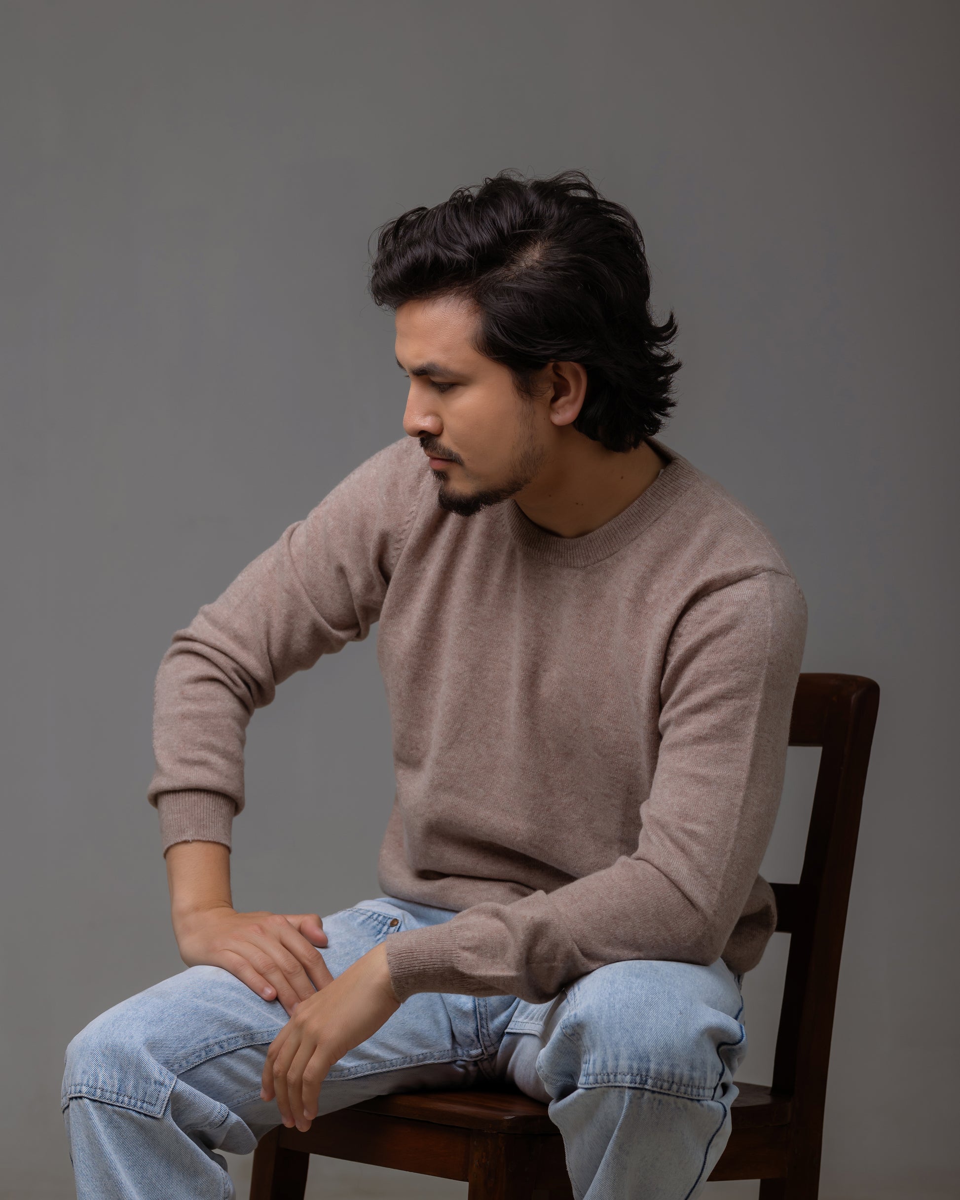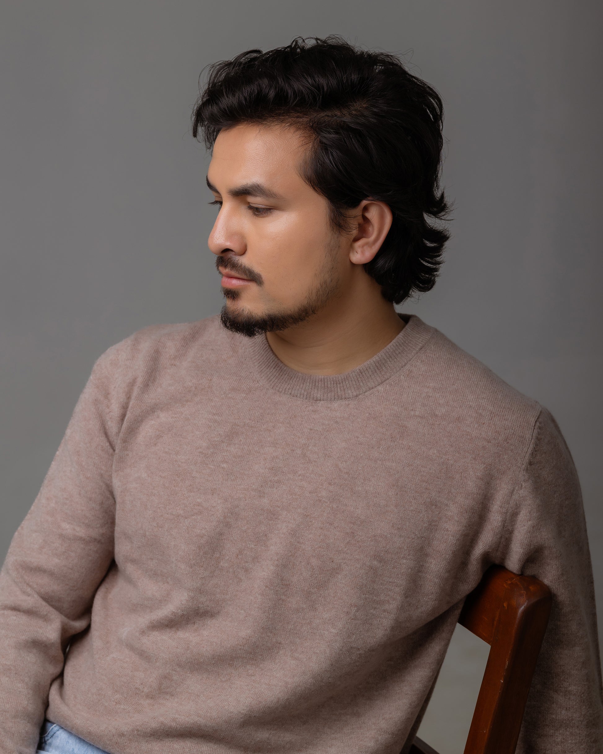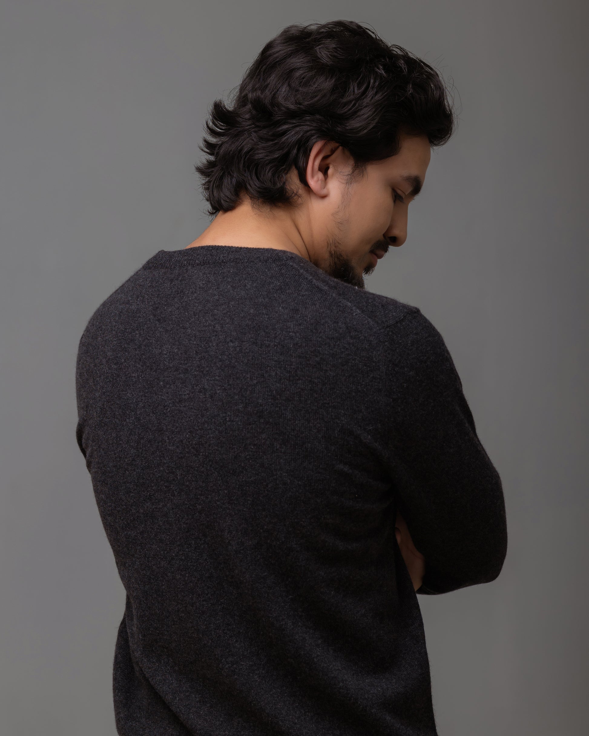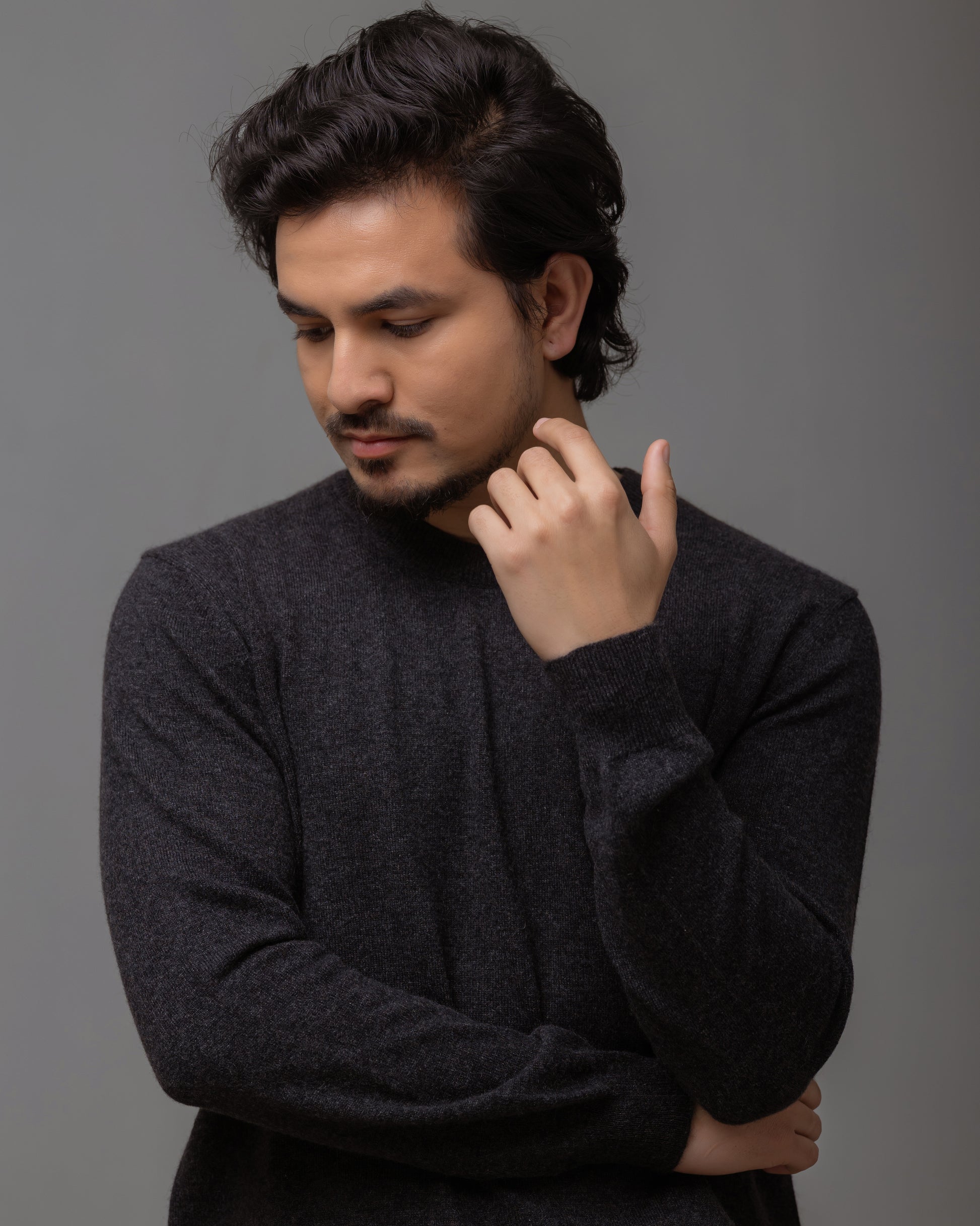 上質な**グレードAカシミヤ100%**を贅沢に使用した、ユニセックス仕様のクルーネックセーターです。