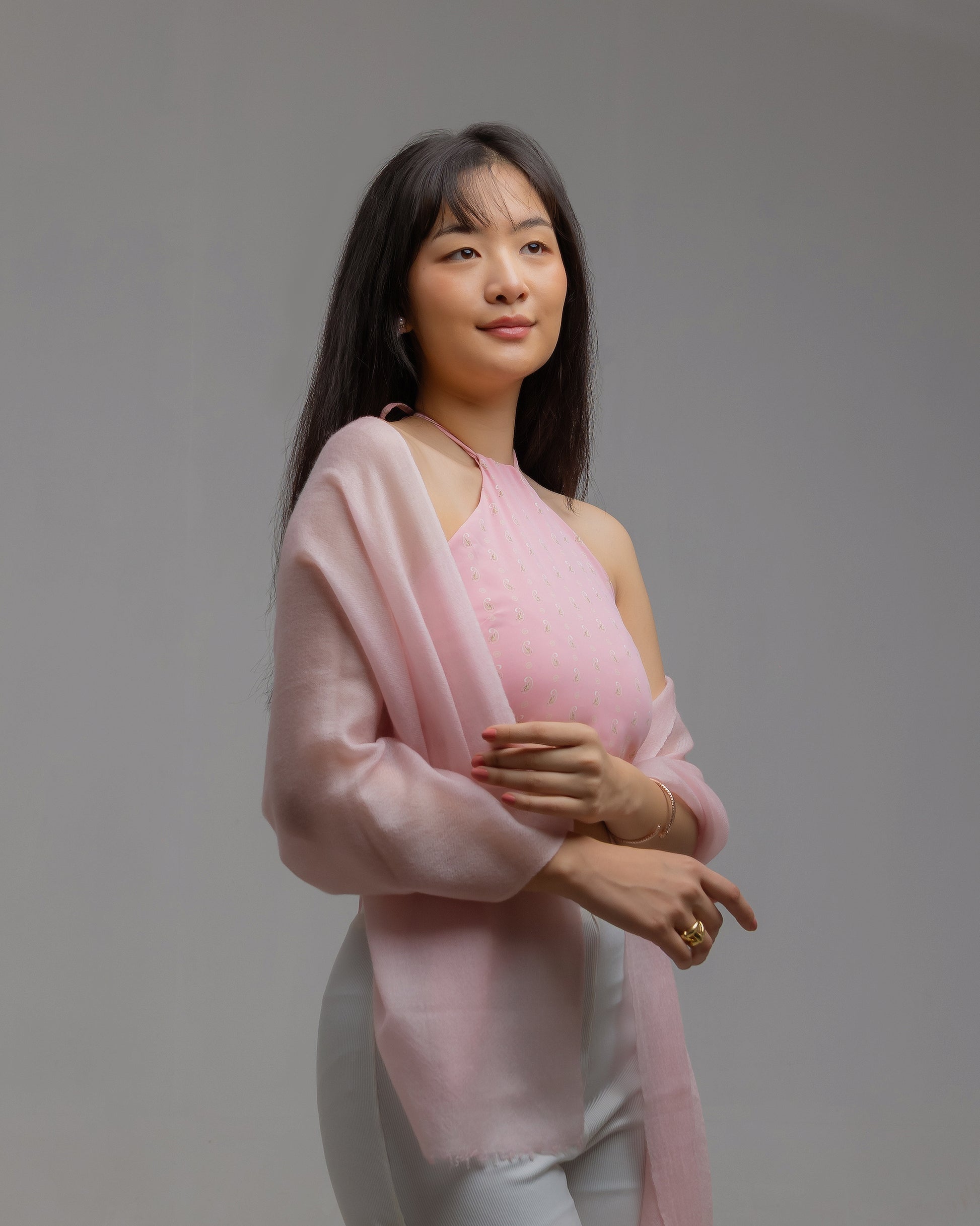 由美 春先にぴったりの軽さで、チクチク感ゼロ。ずっと触っていたくなる気持ちよさです。